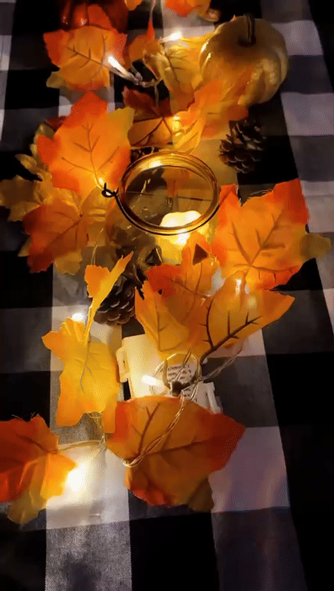 Bring the warm glow of autumn and the spooky charm of Halloween into your home with the Artificial Maple Leaf Lantern Garland. Designed with vibrant orange LED lights, this garland is the perfect decoration for cozy fall nights, Halloween parties, or festive gatherings.